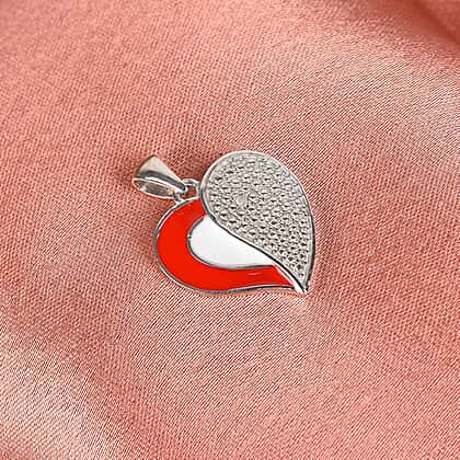 Diamond Enamelled Heart Pendant in Platinum Overlay Sterling Silver