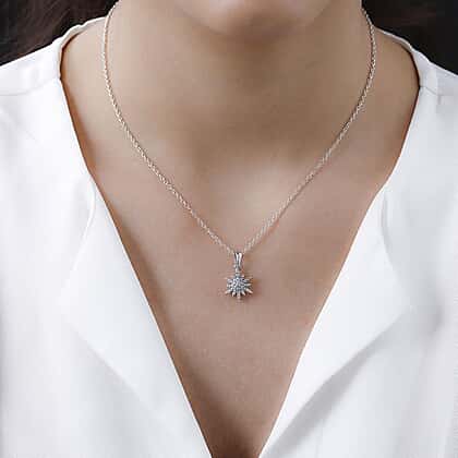 Diamond Starburst Pendant (with Clasp) in Platinum Overlay Sterling Silver