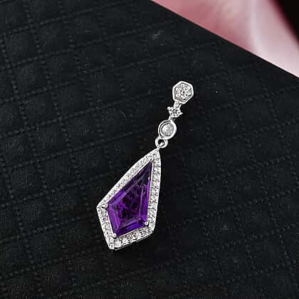 D'Joy - African Amethyst & White Zircon Halo Pendant in Rhodium Overlay Sterling Silver 3.33 Ct.