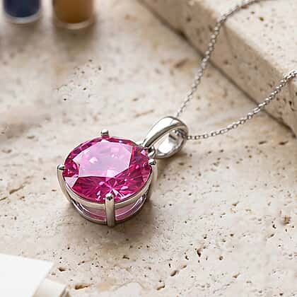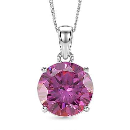 D'Joy - Pink Moissanite Solitaire Pendant with Chain (Size - 18) in Rhodium Overlay Sterling Silver 9.40 Ct.
