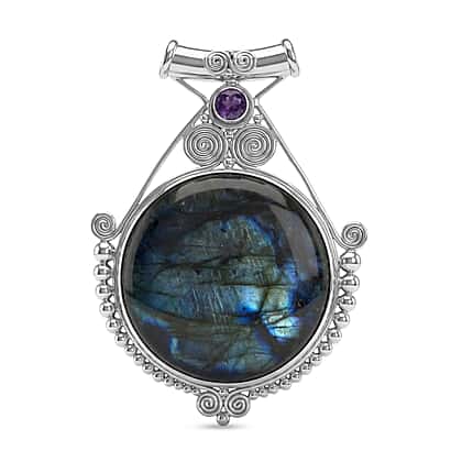 D'Joy Labradorite, African Amethyst Pendant Sterling Silver, Silver Wt.25.6 Gms 118.360 Ct.