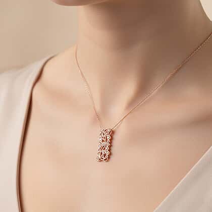 D'Joy Natural Pink Diamond Leaf Vine Pendant in 18K Vermeil Rose Gold Plated Sterling Silver