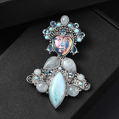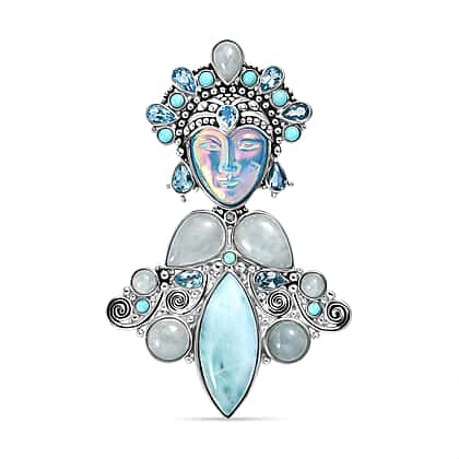 D'Joy Optic Fiber Pink Pearl Coating & Multi Gemstones Pendant in Rhodium Overlay Sterling Silver 29.36 Ct, Silver Wt. 13.20 Gms.