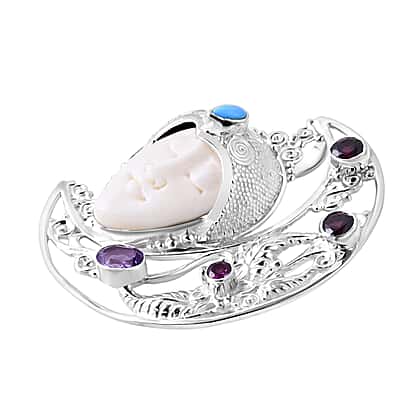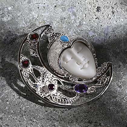 D'Joy Ox Bone, Red Garnet, African Amethyst Pendant Sterling Silver, Silver Wt.18.74 Gms 16.860 Ct.