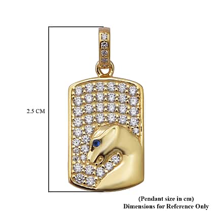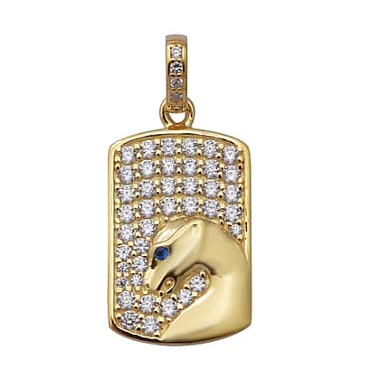ELANZA Simulated Diamond and Simulated Blue Sapphire Dog-Tag Style Panther Pendant in Yellow Gold Overlay Sterling Silver
