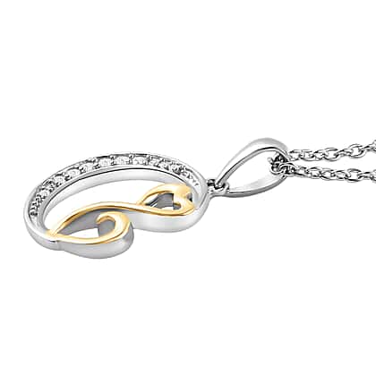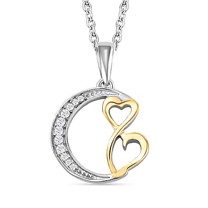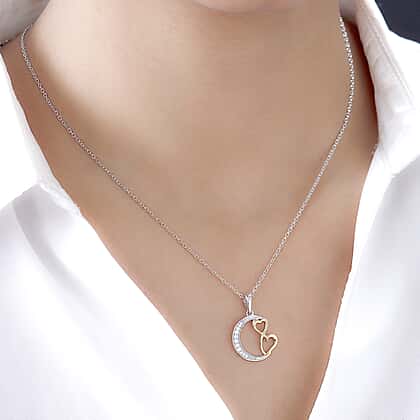 ELANZA Simulated Diamond Moon Pendant And Chain ( Size 20) in Two Tone Overlay Sterling Silver