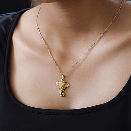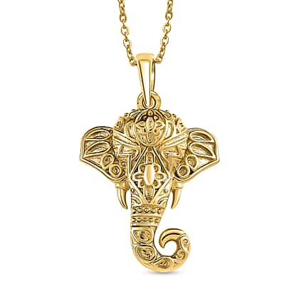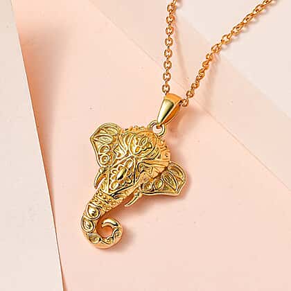 Elephant Pendant with Chain (Size 20) in 18K Gold Vermeil Plated Sterling Silver, Silver Wt. 6.22 Gms