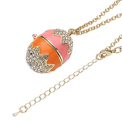 Faberge eggs are famous for their stunning, intricate patterns and designs all throughout the world . This Easter egg Bunny necklace is crafted from yellow gold-tone metal with a classic lustre that will not fade even if worn every day. The easy-to-wear lobster clasp on this necklace makes it a breeze to put on. When you open the pendant, you'll see an adorable white bunny. This beautiful necklace is adorned with Enamelled White Austrian Crystal for a dazzling look.