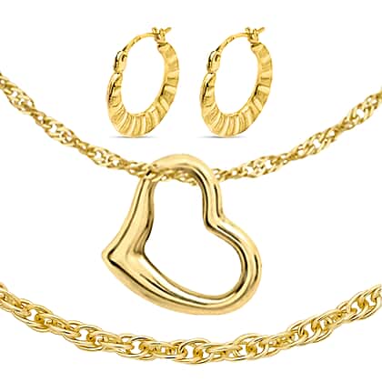 Epic Friday Mega Deal - Set of 3 - 9K Yellow Gold Heart Pendant, Prince of Wales Chain AND Creole Hoop Earrings (18 inch)