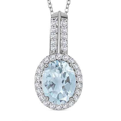 Espirito Santo Aquamarine and Natural Zircon Pendant with Chain (Size - 20) in Platinum Overlay Sterling Silver 2.34 Ct.