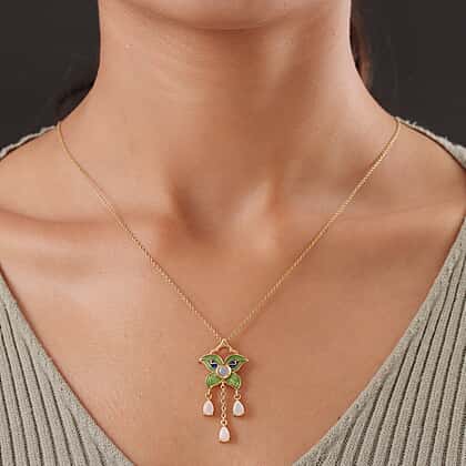 Ethiopian Welo Opal Enamelled Floral Pendant in 14K Gold Overlay Sterling Silver 1.01 Ct.