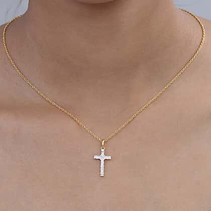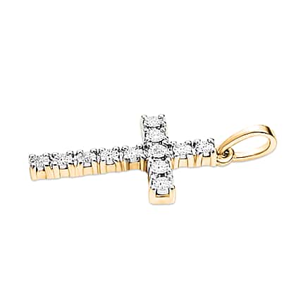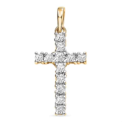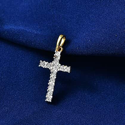 EverTrue White Diamond Cross Pendant in Yellow Gold Tone