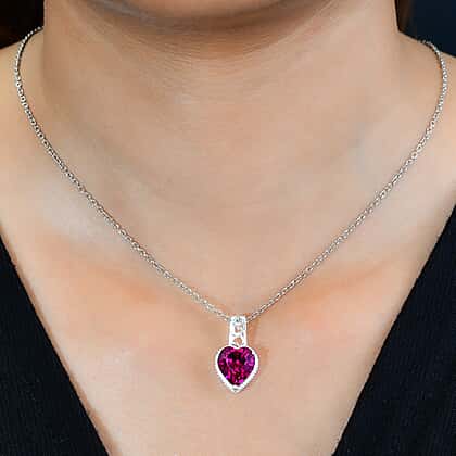 Fuchsia Austrian Crystal Sterling Silver Heart Pendant with Stainless Steel Chain (Size 20)