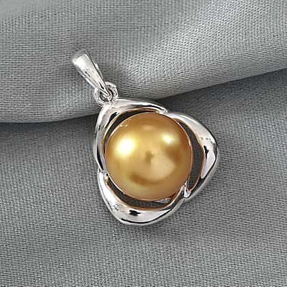 Golden South Sea Pearl Pendant in Platinum Plated Sterling Silver 9.03 Ct