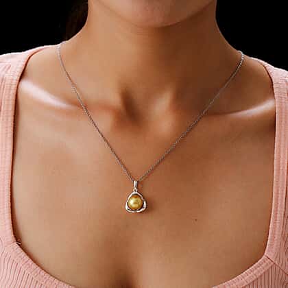 Golden South Sea Pearl Pendant in Platinum Overlay Sterling Silver