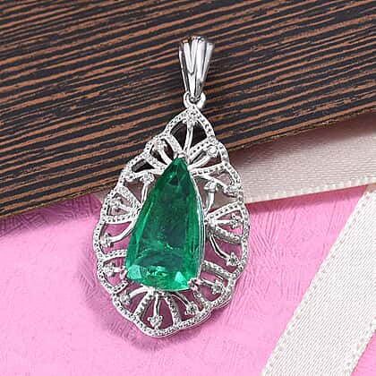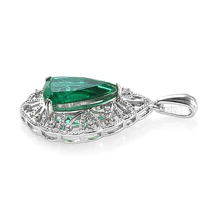 GP 5.93 Ct Emeraldine Triplet Quartz,and Multi Gemstone Drop Pendant in Platinum Plated Silver
