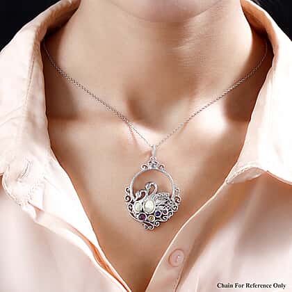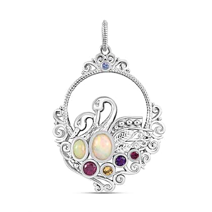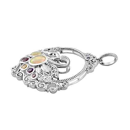 GP - Ethiopian Welo Opal Peacock Pendant with Multi Gemstones in Platinum Plated Sterling Silver 1.72 Ct, Silver Wt. 10.83 Gms