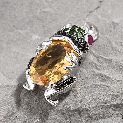 GP Citrine and Multi Gemstones Frog Pendant in Platinum Plated Sterling Silver