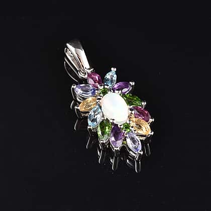GP Italian Garden Collection - Ethiopian Welo Opal, Tanzanite, Amethyst and Multi Gemstone Pendant in Rhodium Overlay Sterling Silver 1.60 Ct