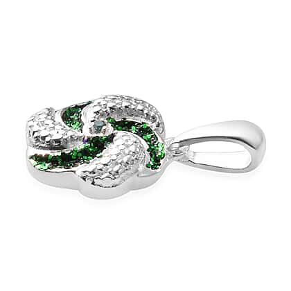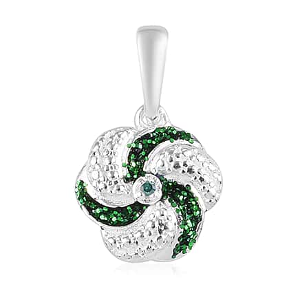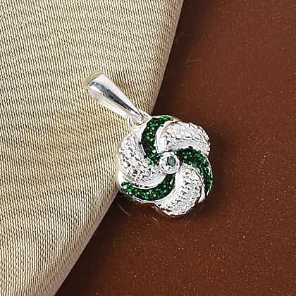 Green Diamond Swirl Design Pendant in Sterling Silver