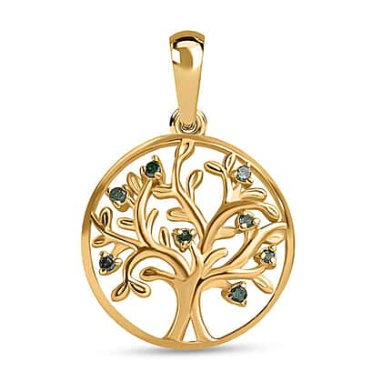 Green Diamond Tree of Life Pendant in 18K Yellow Gold Vermeil Plated Sterling Silver