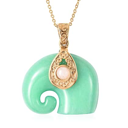 Green Jade and White Jade Elephant Pendant with Chain (Size 20) in Yellow Gold Plated Stainless Steel 74.45 Ct