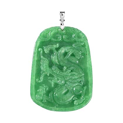 Green Jade Dragon Pendant in Rhodium Overlay Sterling Silver 152.15 Ct