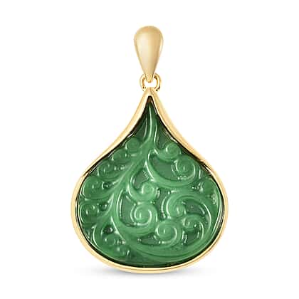 Green Jade Pendant in Yellow Gold Overlay Sterling Silver 14.500 Ct.