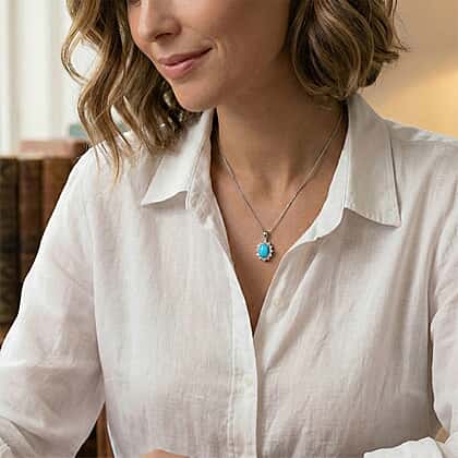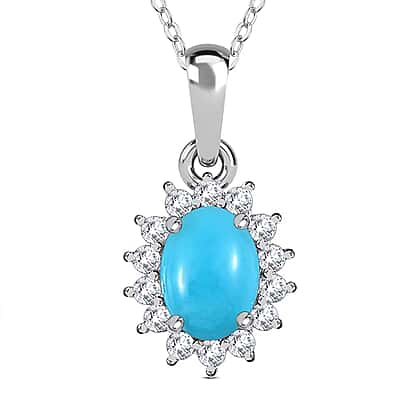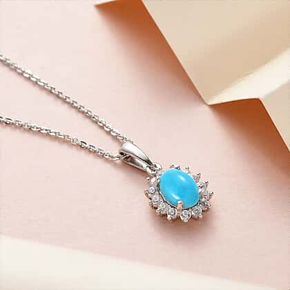 Arizona Sleeping Beauty Turquoise December Birthstone and Natural Zircon Pendant with Chain (Size - 20) in Platinum Overlay Sterling Silver