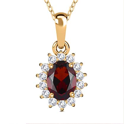 Red Garnet January Birthstone and Natural Zircon Halo Pendant with Chain (Size - 20) in 18K Vermeil Yellow Gold Plated Sterling Silver