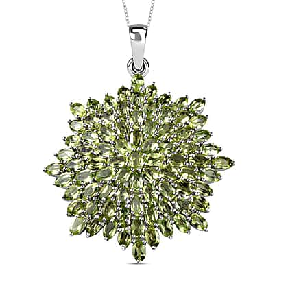Elevate your fashion-forward look with the exuberance of this peridot cluster pendant with a chain and get the fancy of each onlooker's attention toward your beautiful neckline. It is forged in durable sterling silver and is ideal to be worn daily. It features a hexagonal shape, made through the cluster setting of oval faceted-cut peridots, creating an ocean of rich green hues upon your bust that everyone will covet. The accompanying 20-inch chain is slid through the bail on the top and completes the look of this stunner.