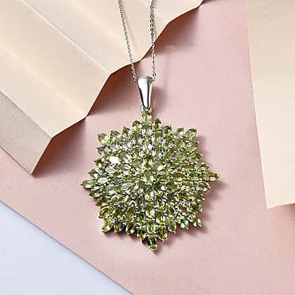 Peridot Cluster Pendant with Chain (Size - 20 ) in Platinum Overlay Sterling Silver 21.25 Ct