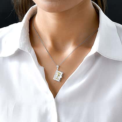 Elevate your spiritual journey by adding this Holy Bible pendant necklace. Crafted in sterling silver, the Holy Bible opens to six written sides, composed of Psalms 23: 1-3 of the holy book. Expert artisans have put the engraved page-like plates of sterling silver fixed through an intersecting rod which secures the movement of the pages of this bible figurine pendant. The golden tone on the cover adds a rich style. The clasp allows you to open and close the book whenever needed.