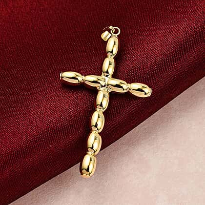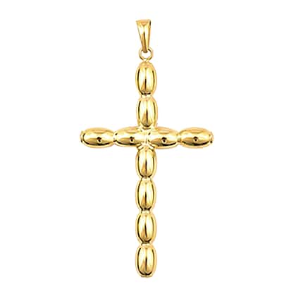 Italian Made - 9K Yellow Gold Beaded Cross Pendant