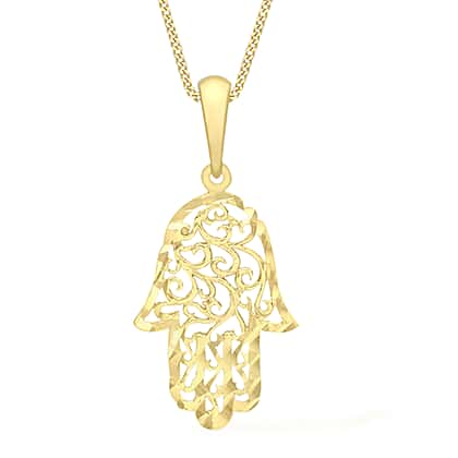 Hamsa Hand Pendant in 9K Yellow Gold with Diamond Cut