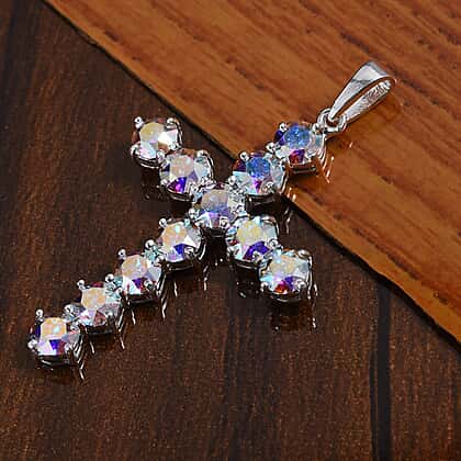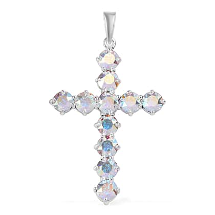 J Francis - AB Crystal (Rnd) Cross Pendant in Sterling Silver