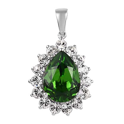 Lustro Stella Fern Green Crystal and White Halo Pendant in Sterling Silver