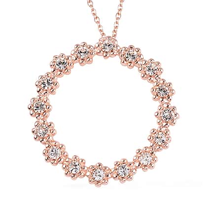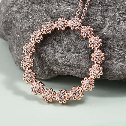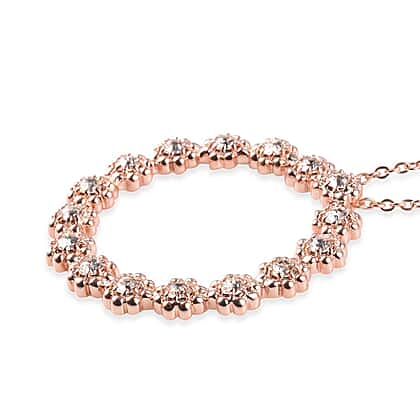 Lustro Stella White Crystal Flower Circle Pendant with Chain in 18K Rose Gold Plated 20 Inch