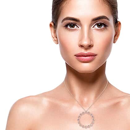 J Francis - White Crystal Flower Circle Pendant with Chain (Size 20) in 18K Rose Gold Plated