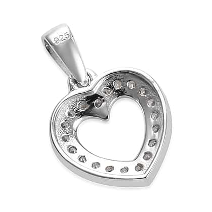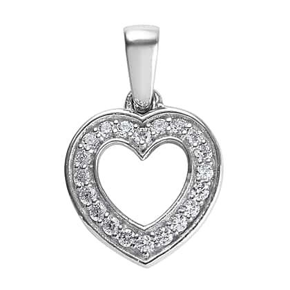J Francis - Platinum Overlay Sterling Silver (Rnd) Heart Pendant Made with Finest CZ