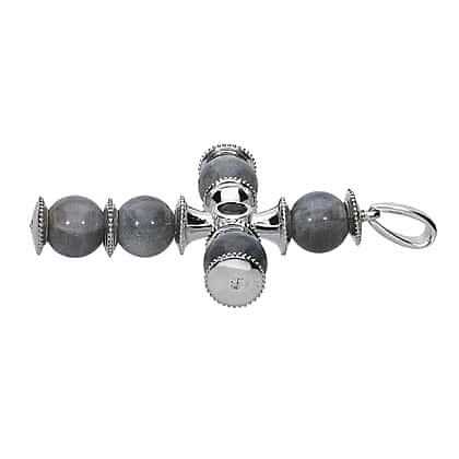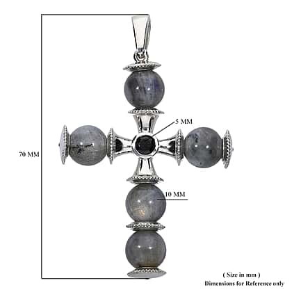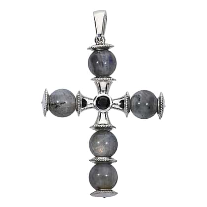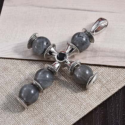 41.25 Ct Labradorite and Boi Ploi Black Spinel Cross Pendant in Platinum Plated