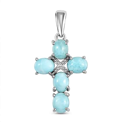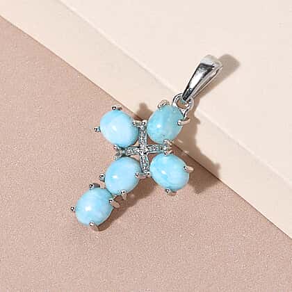 Larimar Cross Pendant in Platinum Overlay Sterling Silver 2.18 Ct