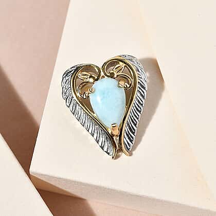 Larimar Pendant in Yellow Gold & Platinum Overlay Sterling Silver 1.60 Ct.