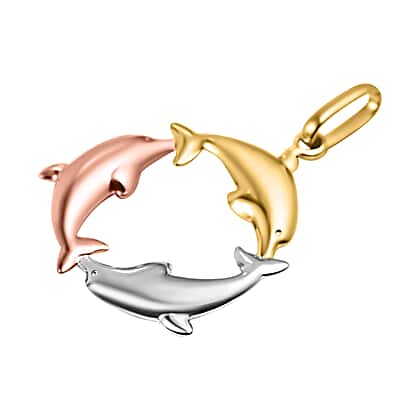 Las Vegas Closeout Deal - 9K Yellow, White and Rose Gold Dolphin Circle Pendant