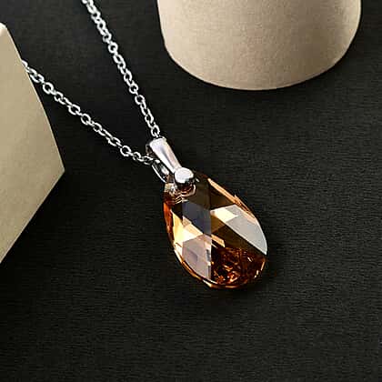 Layer your neckline with this light colorado crystal pendant. This pear shape crystal has drilled setting with a loop made from sterling silver with platinum overlay. It has a 20 inches long chain made from stainless steel and secured with a durable lobster clasp fastening. You can pair it with earrings and a bracelet from TJC to complete the set.
