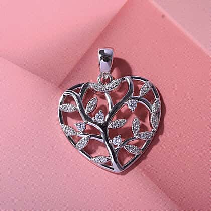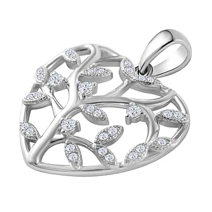 Lustro Stella - White Cubic Zirconia Leaf Heart Pendant in Rhodium Overlay Sterling Silver