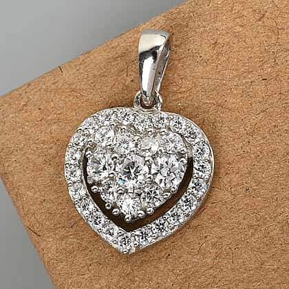 Lustro Stella Platinum Overlay Sterling Silver Heart Pendant Made with Finest CZ 1.48 Ct.