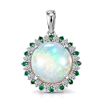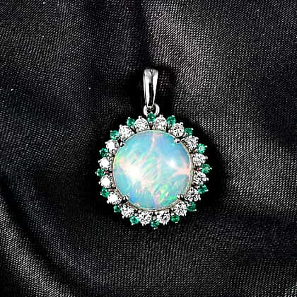 Luxuriant 950 Platinum AAA Ethiopian Opal Emerald & SI-G-H Lab Grown Diamond Halo Pendant 6.47 Ct, Platinum Wt. 4.13 Gms