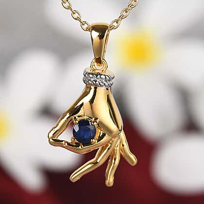 Madagascar Blue Sapphire Mudra Hand Pendant With Chain (Size 20) in Yellow Gold and Platinum Overlay Sterling Silver 0.35 Ct, Silver wt. 8.50 Gms