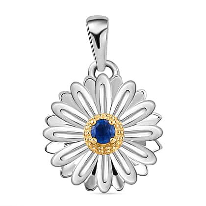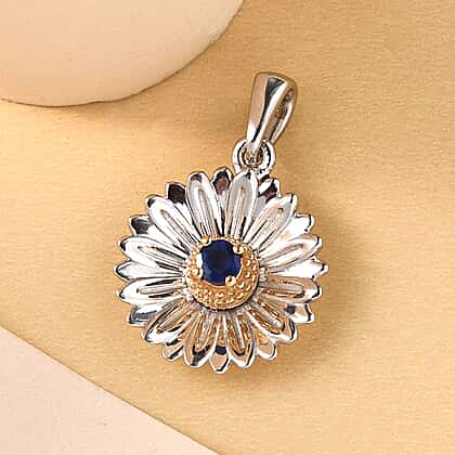 Masoala Sapphire (FF) Floral Pendant in Platinum and Yellow Gold Overlay Sterling Silver